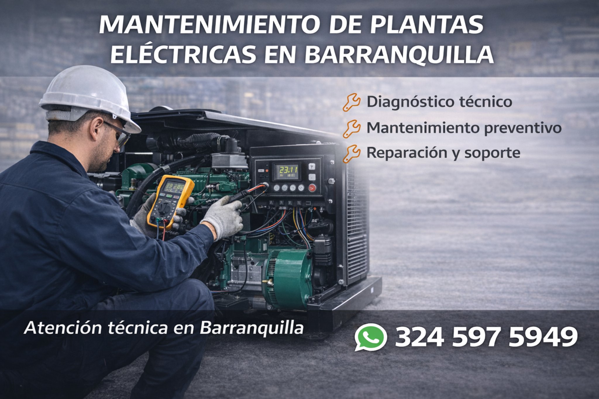 Este servicio está orientado a clientes en Barranquilla que requieren respaldo técnico para sus plantas eléctricas. También evaluamos necesidades de mantenimiento programado y soporte postventa según el tipo de equipo y aplicación.